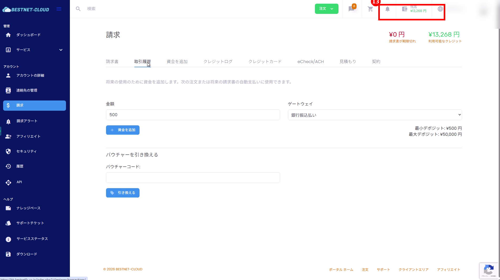 - 対象のサービス名(例:BESTNET-CLOUD)をクリックして管理画面へ移動します。