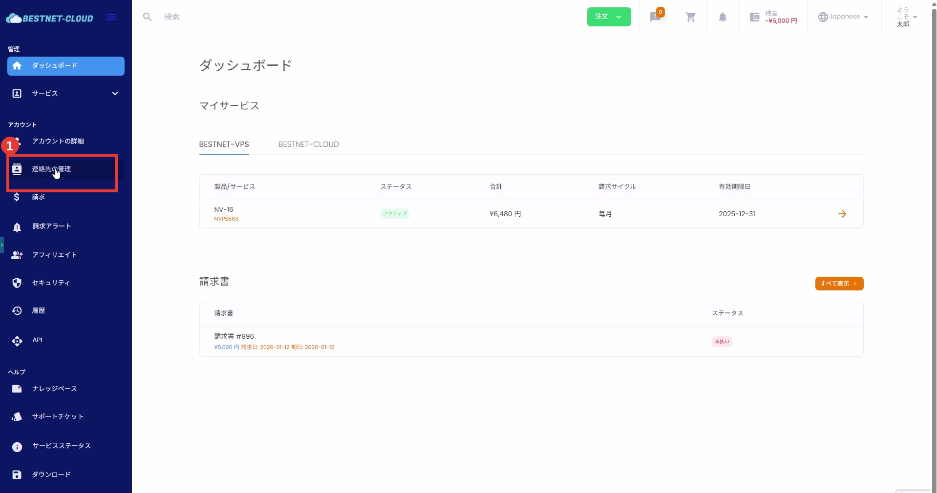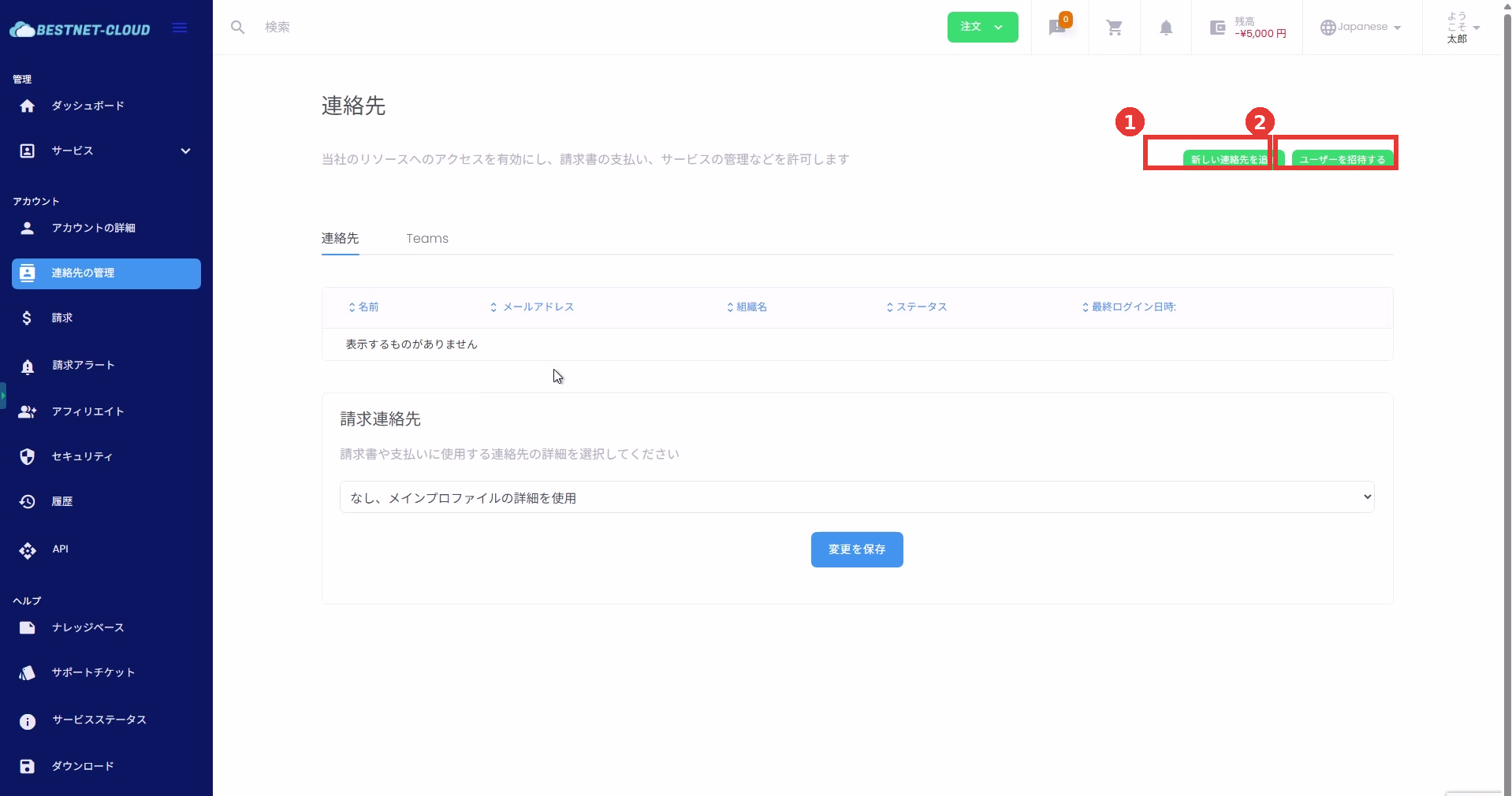 1. 連絡先(サブユーザー)管理画面を開く #