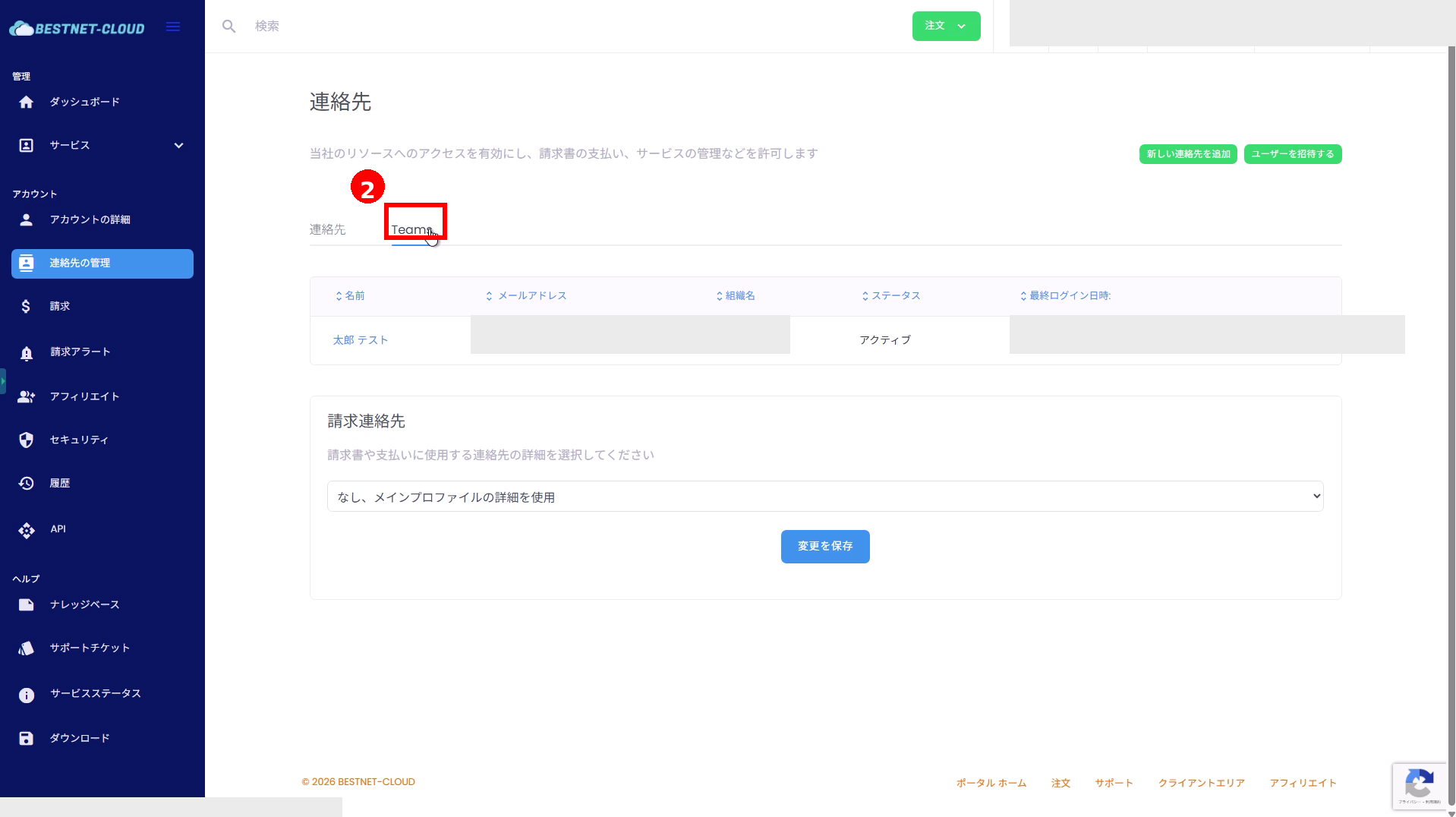 • クライアントポータルにログインできるアカウント(管理者またはチーム作成が可能な権限)。