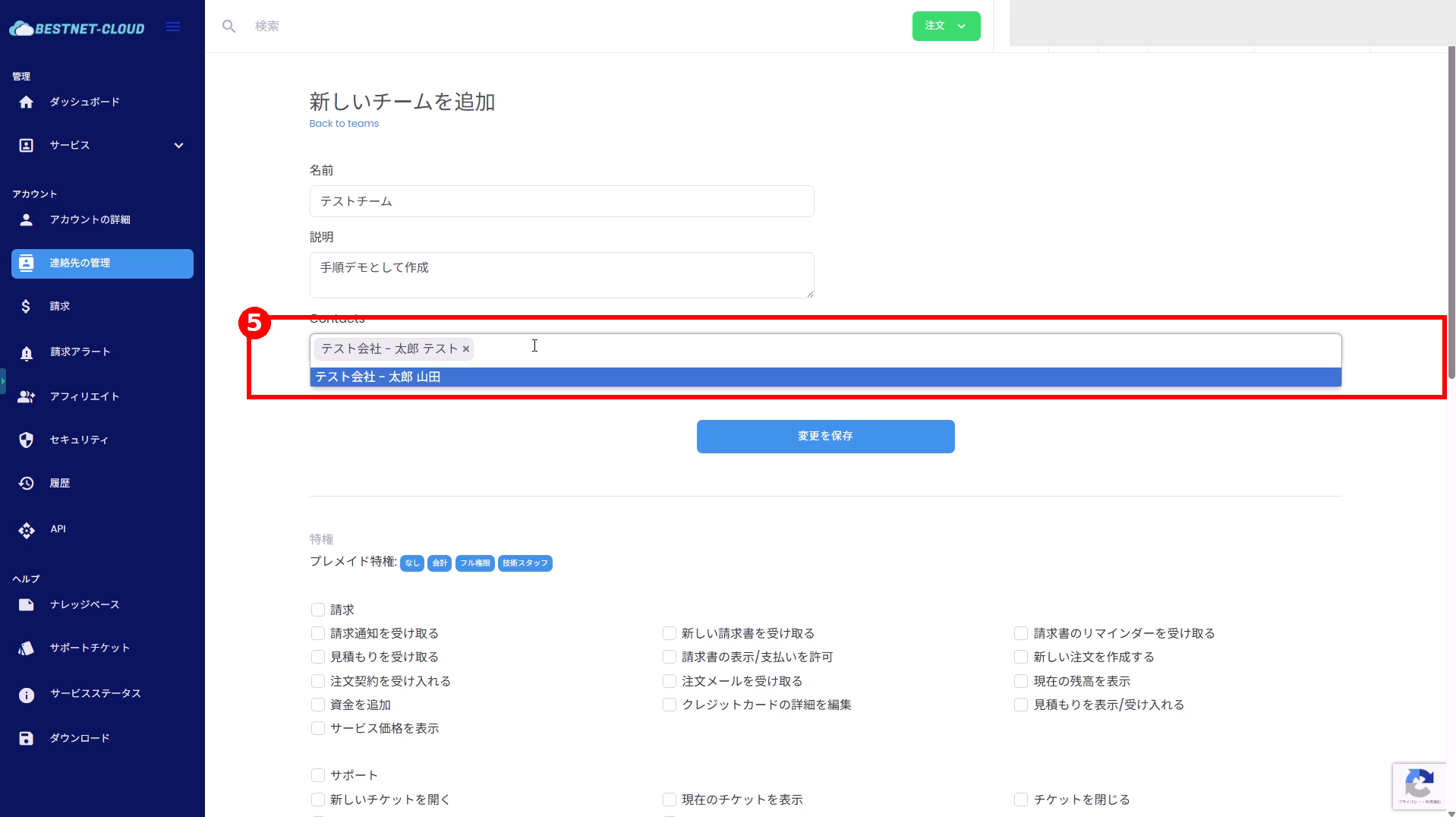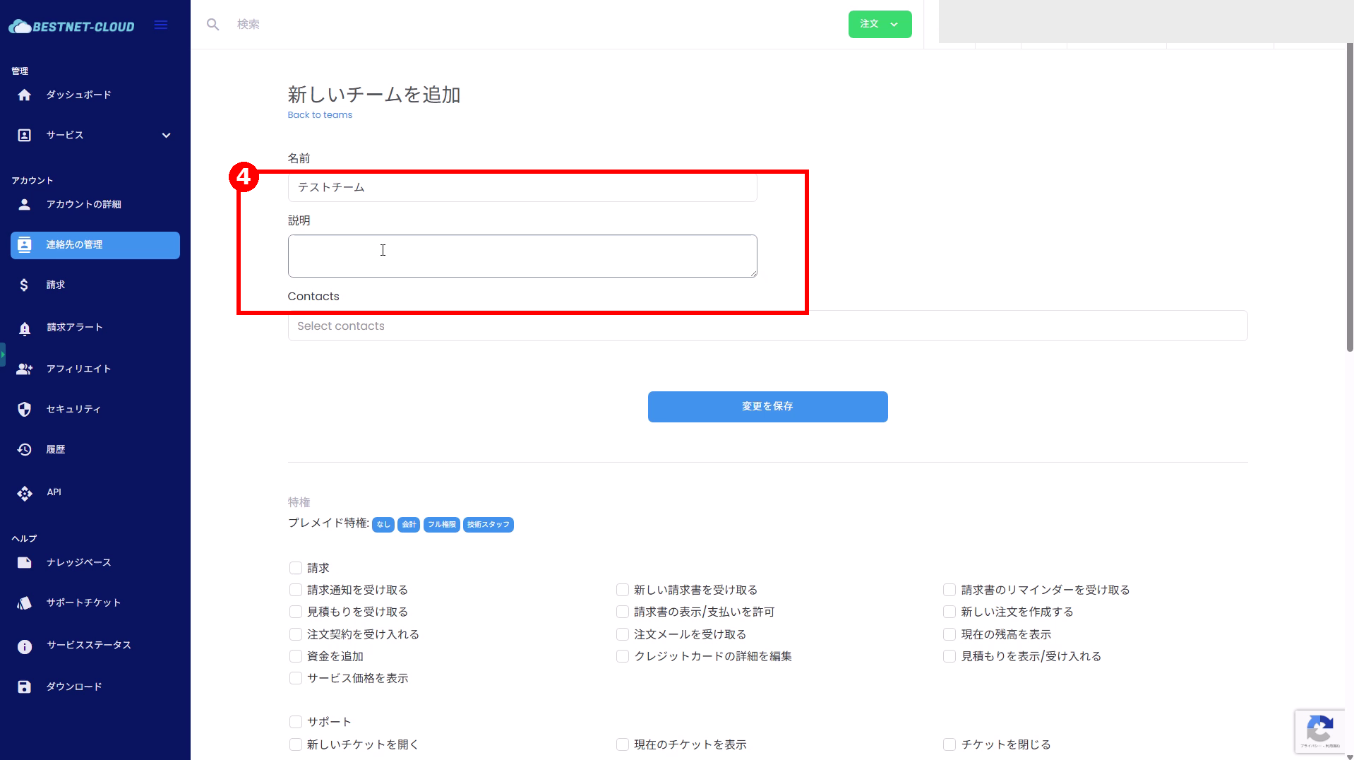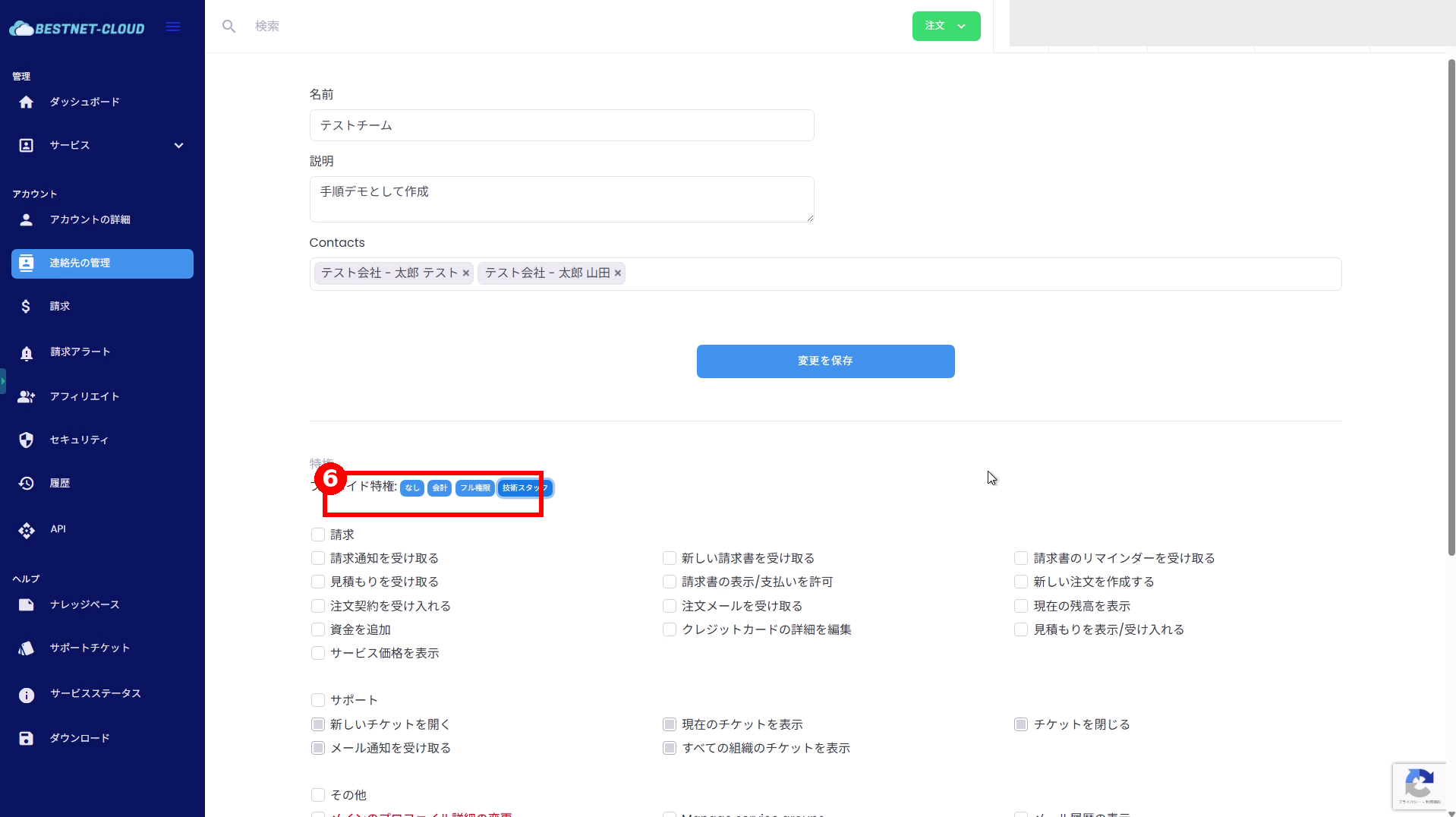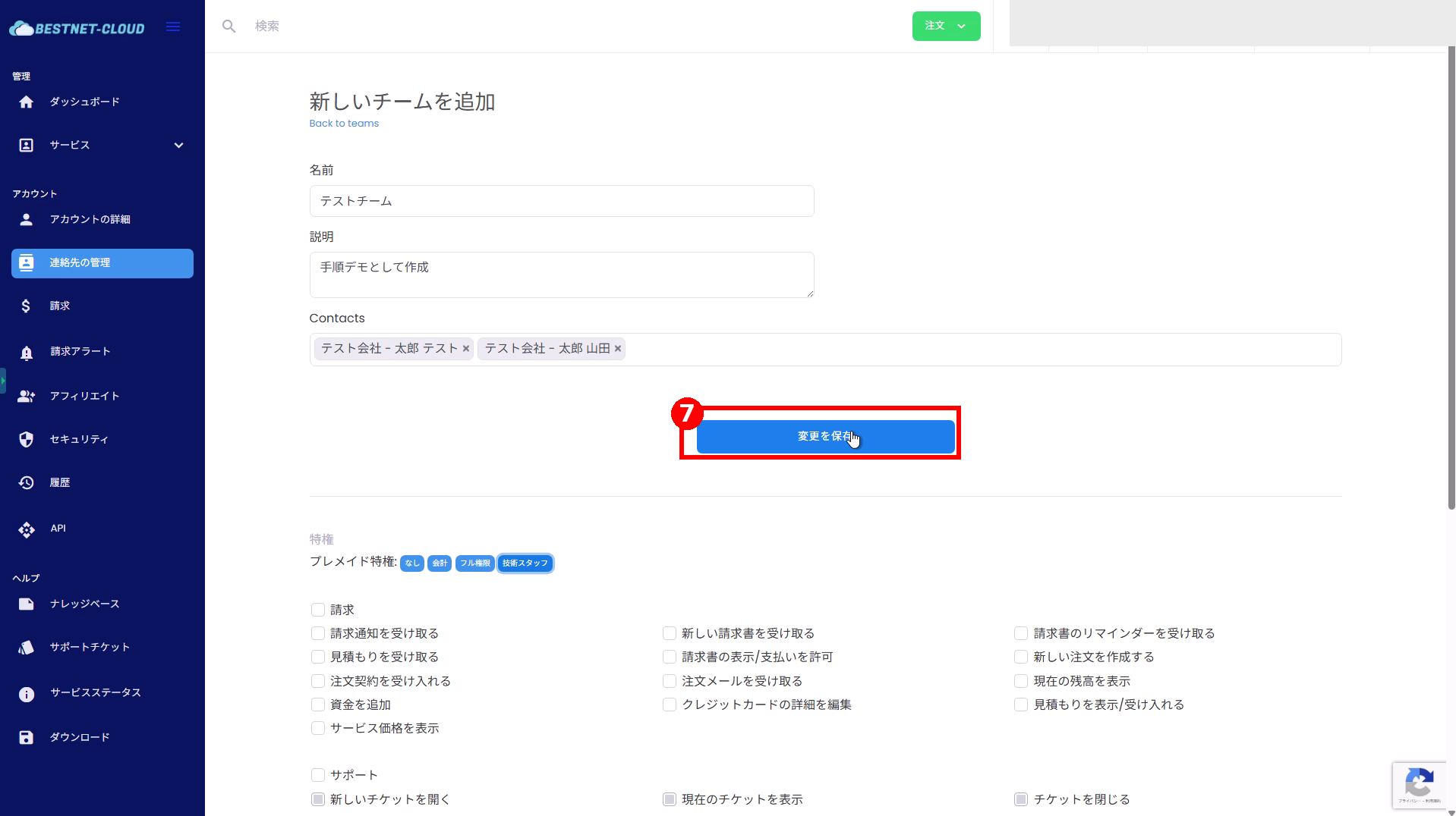 1. 画面下部の 特権 セクションで、チームに付与する権限を設定します。
