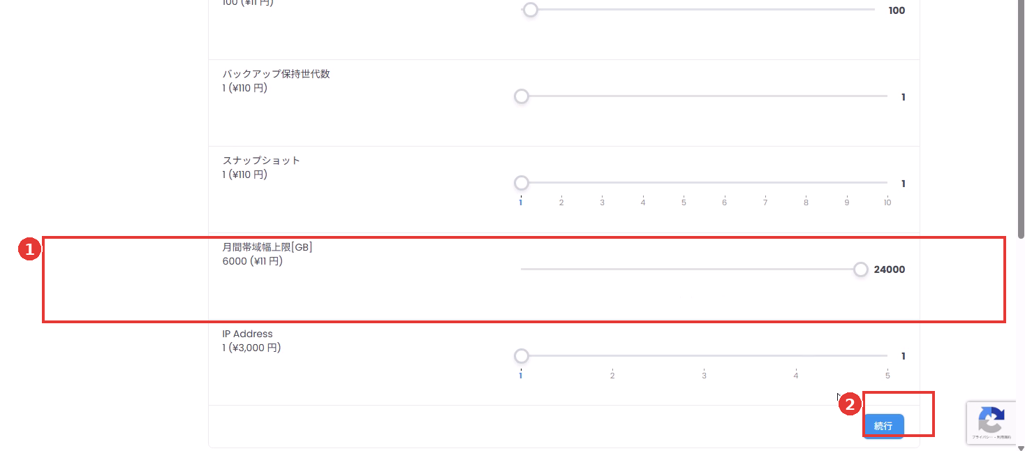 手順2:月間帯域幅上限(GB)を希望値に変更し、「続行」する #