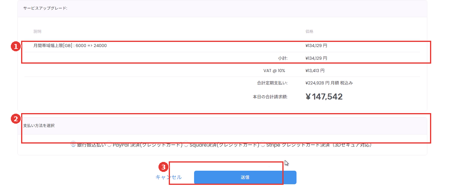 3. 送信 をクリックして、アップグレードオーダーを確定します(図の③)。