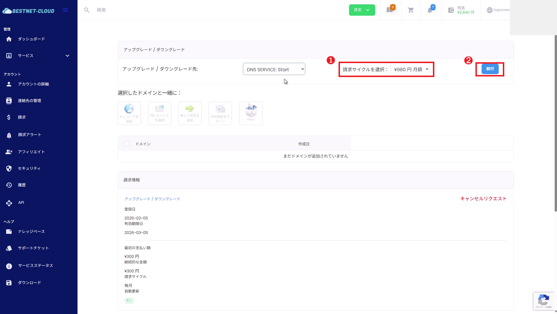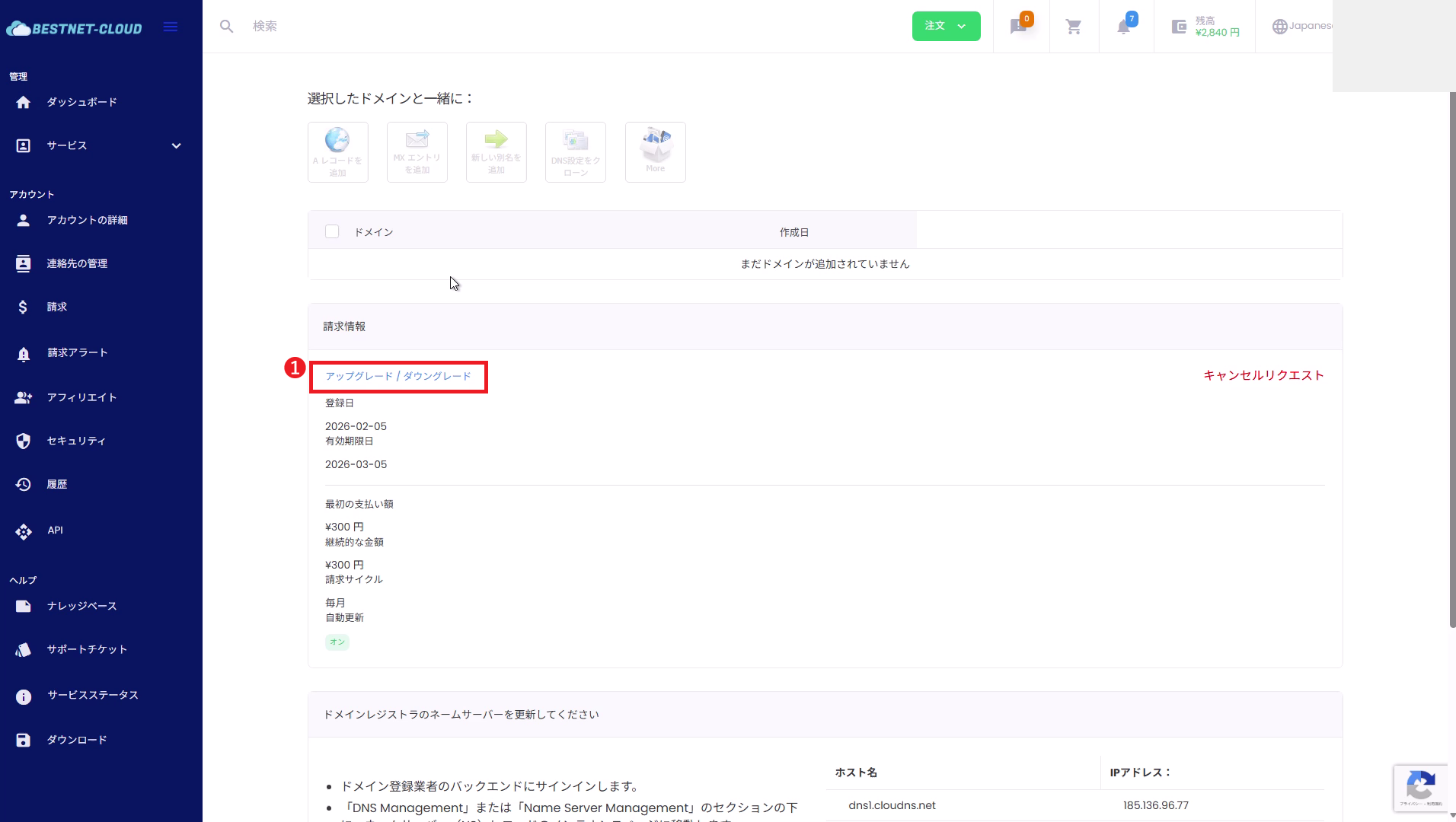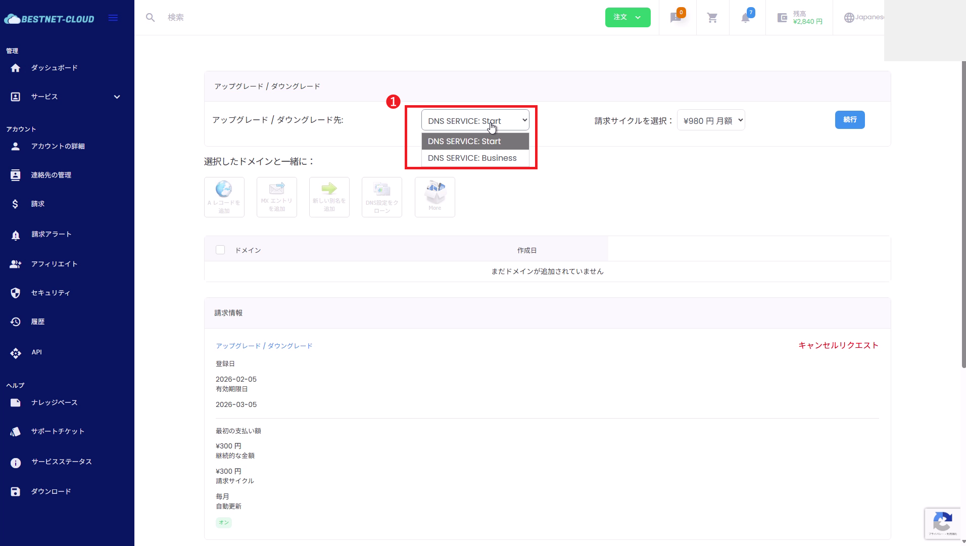 DNSサービス-プランのアップグレードダウングレード